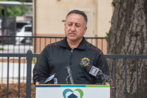 San Bernardino County Fifth District Supervisor Joe Baca, Jr. addresses the audience at the May 2, 2023, press conference.