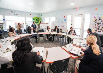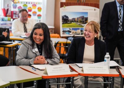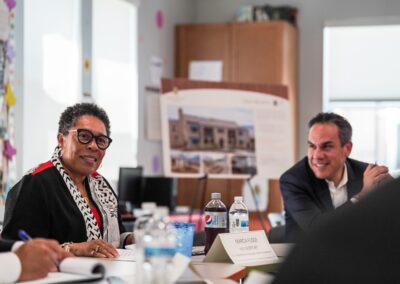 Immediately following the press conference, Maria Razo and other HACSB staff joined Congressman Aguilar for a roundtable with representatives from the Federal Home Loan Banks, National CORE, and other leaders on the topic of affordable housing and supportive services.  The group discussed successes and challenges in affordable housing development.  Maria Razo shared insights from HACSB’s experience as a Moving to Work housing authority, which has provided HACSB with flexibility to creatively address funding challenges in the redevelopment of its aging affordable housing communities.